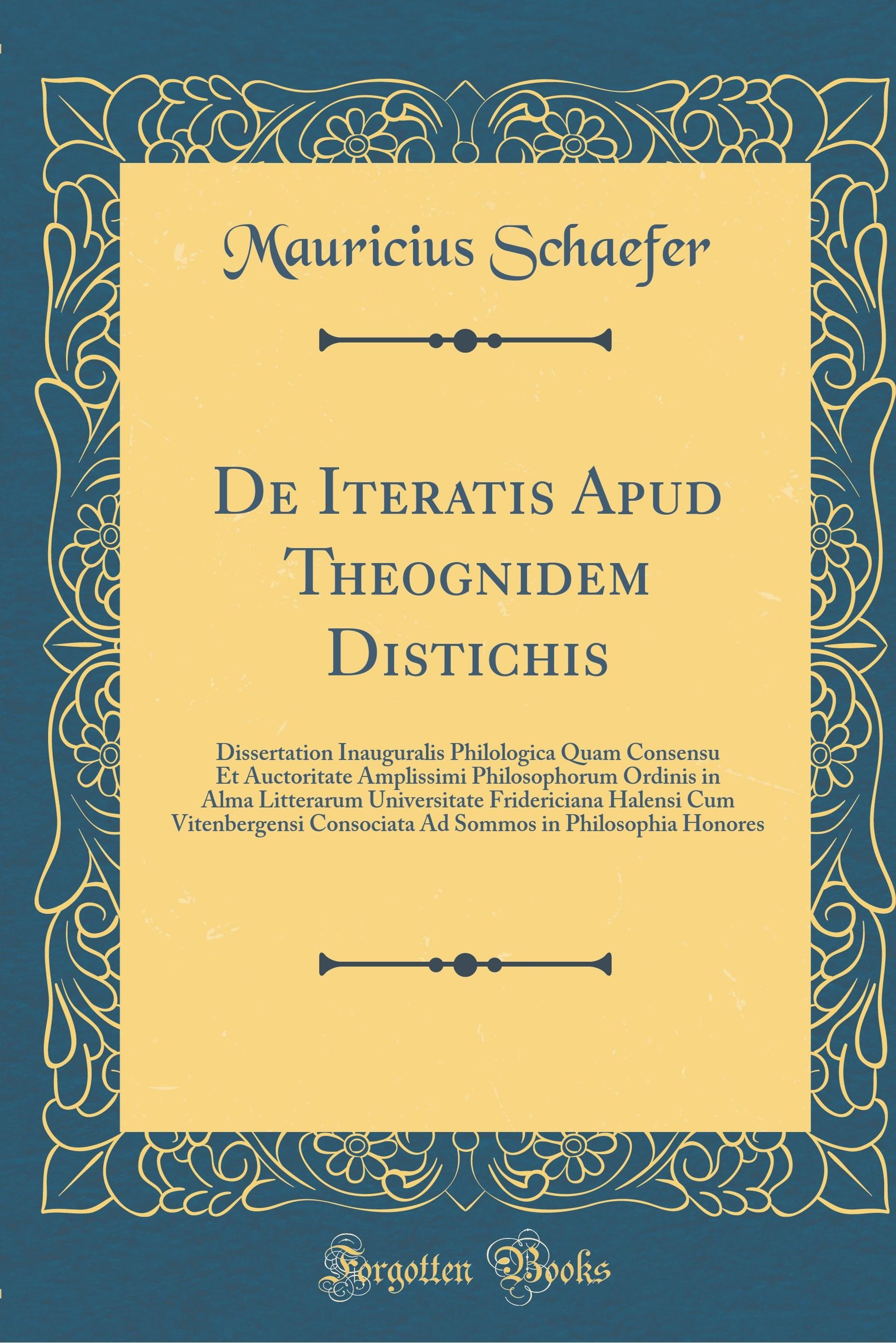 de Iteratis Apud Theognidem Distichis: Dissertation Inauguralis Philologica Quam Consensu Et Auctoritate Amplissimi Philosophoru (latinsky)