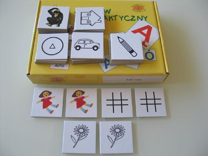 Zestaw ten służy do nabywania umiejętności wyszukiwania takich samych elementów, wyszukiwania ich z pamięci oraz zapamiętywania ciagu obrazków lub kształtów geometrycznych. Są to ćwiczenia wstępne do zapamiętywania sylab i wyrazów jednosylabowych.