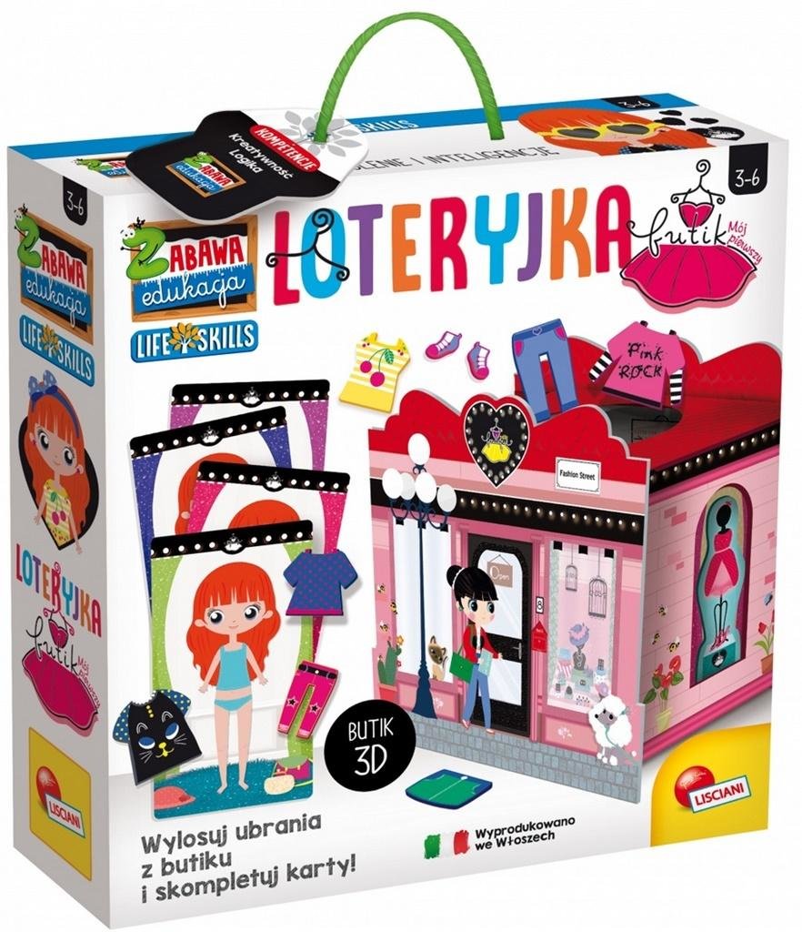 Zestaw edukacyjny zawierający butik z ubraniami, dzięki któremu dziecko ma okazję poznać elementy codziennego ubioru i użyć ich, dopasowując je do odpowiednich postaci. Zabawa i edukacja to nowa seria edukacyjna, która pozwala dzieciom na poznawanie określonych obszarów i zdobywanie istotnych kompetencji, które są istotne w późniejszych etapach życia. Światowa Organizacja Zdrowia wyodrębniła 10 umiejętności życiowych, które są potrzebne by wyrosnąć na lepszą i szczęśliwszą osobę, która jest w stanie prowadzić godne życie. I to właśnie te umiejętności są rozwijane w grach z tej serii, które są również dla dziecka świetną zabawą.
