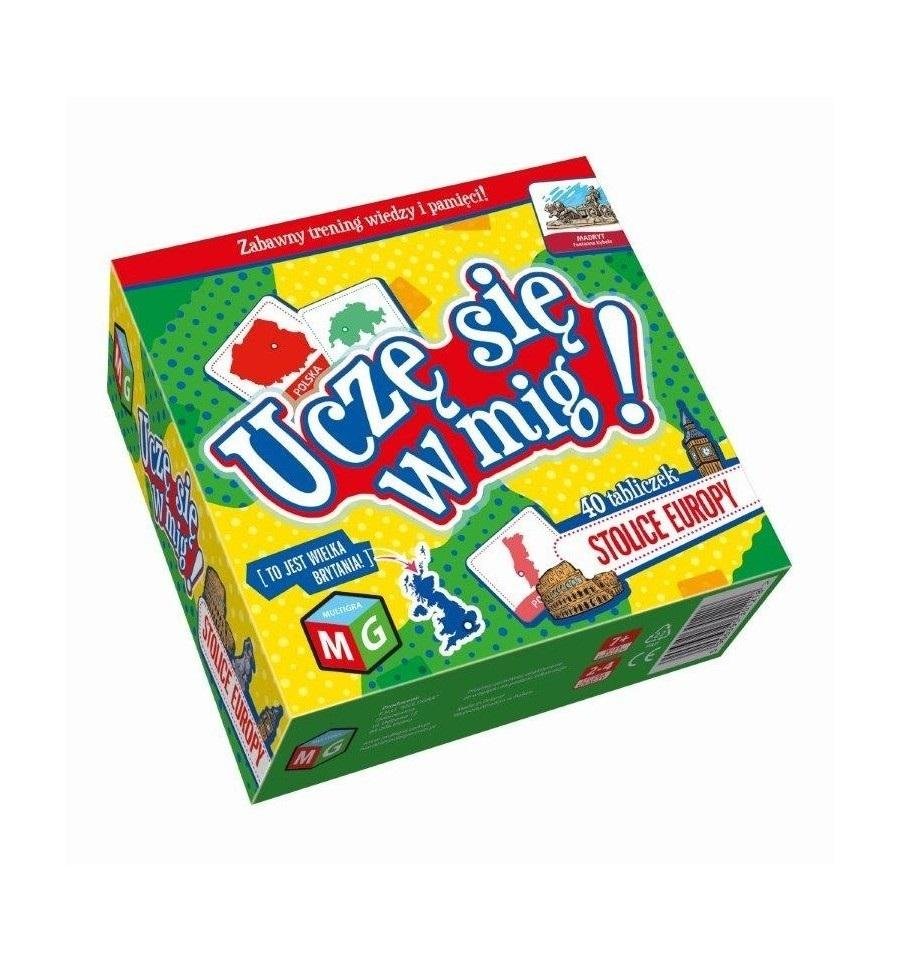 "UCZĘ SIĘ W MIG - STOLICE EUROPY" to wspaniała gra, która rozwinie pamięć i spostrzegawczość Twojego dziecka. Dodatkowo poszerzy jego wiedzę z zakresu geografii i pomoże obudzić w nim maturę prawdziwego podróżnika zapewniając przy tym dużo dobrej zabawy i emocji. W grze wygrywa ten, kto najlepiej zapamięta położenie par państw i ich stolic, odkrytych na chwilę, spośród wszystkich ilustrowanych tabliczek leżących na stole rewersem do góry. Zawartość opakowania: ilustrowane tabliczki - 40szt, instrukcja.