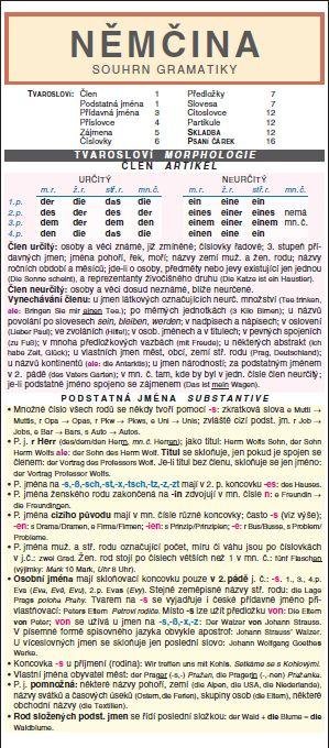 NĚMČINA souhrn gramatiky je ideálním pomocníkem pro všechny, kdo chtějí mít přehled o nejdůležitějších pravidlech německé gramatiky na jednom místě. Díky přehlednému členění a barevnému provedení se v textu snadno orientujete a rychle si osvojíte gramatičnost, která je nezbytná pro úspěch ve škole i při komunikaci.