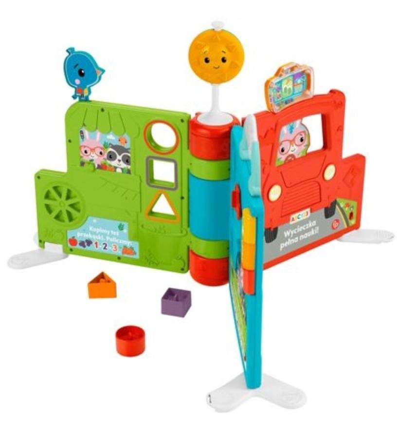 Edukacyjna Gigaksiążka od Fisher-Price(R) to elektroniczna zabawka edukacyjna 2 w 1, która przekształca się z dużej płaskiej książeczki w stojące centrum zabaw z wieloma funkcjami do odkrycia. Edukacyjna Gigaksiążka rośnie wraz z dzieckiem: od zabawy na siedząco po raczkowanie i chodzenie. Gdy maluch naciska 3 podświetlane przyciski, treści edukacyjne na trzech poziomach nauki wprowadzają go w świat literek, liczb, kolorów i nie tylko. W centrum zabaw jest 8 aktywizujących elementów, które będą świetnym zajęciem dla małych rączek, w tym klocki do sortowania i kręciołek czy suwaczek. Zabawka w polskiej wersji językowej.