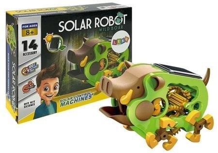 Edukacyjny Robot Solarny Dzik DIY Dzik zasilany energią słoneczną to wspaniały prezent dla dziecka. Stanowił będzie doskonałe wprowadzenie do magicznego świata elektroniki i mechaniki. Solarny zestaw zasilany jest światłem słonecznym, uczy czerpania pożytku z energii słonecznej. To wspaniała zabawa, podczas której dzieci poznają jak energia światła zasila napęd elektryczny. Zestaw pozwala dzieciom na naukę poprzez zabawę, to naturalna forma poznawania świata, która jest najbardziej przyjemna i przyswajalna dla dzieci, a rozbudzona w nich kreatywność zaowocuje w przyszłości. Zestaw gwarantuje wspaniałą zabawę, podczas której dziecko pozna alternatywną energię. Własnoręczny montaż będzie stanowił dodatkową atrakcję. Zestaw zawiera 47 elementów do złożenia dzika. Jednym z najbardziej skutecznych sposobów na rozwijanie zdolności interpersonalnych u dzieci jest tworzenie samodzielnie własnych prac. Kreatywne zabawki rozbudowują inteligencję, zdolność skutecznego wysławiania się i przekazywania innym osobom swoich zamiarów i chęci. Cechy charakterystyczne: - Zasilany energią słoneczną - Łatwa instalacja - Zalecany wiek: 8+ - Prędkość obrotowa: 12 000 obrotów / min - Napięcie: 1,2 V DC Wymiary pudełka: 20.5 cm x 16 cm x 4.5 cm Zestaw przeznaczony jest dla dzieci powyżej 8. roku życia. Zestaw posiada certyfikat CE i jest zgodny z normą EN 71. Zapakowany jest w kartonik z naukową grafiką, dzięki czemu nadaje się idealnie na prezent.