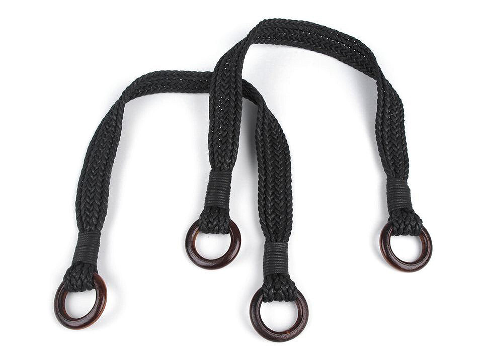Proplétaná ucha na tašky délka 54 cm s kroužky - 2 ks - 2 černá