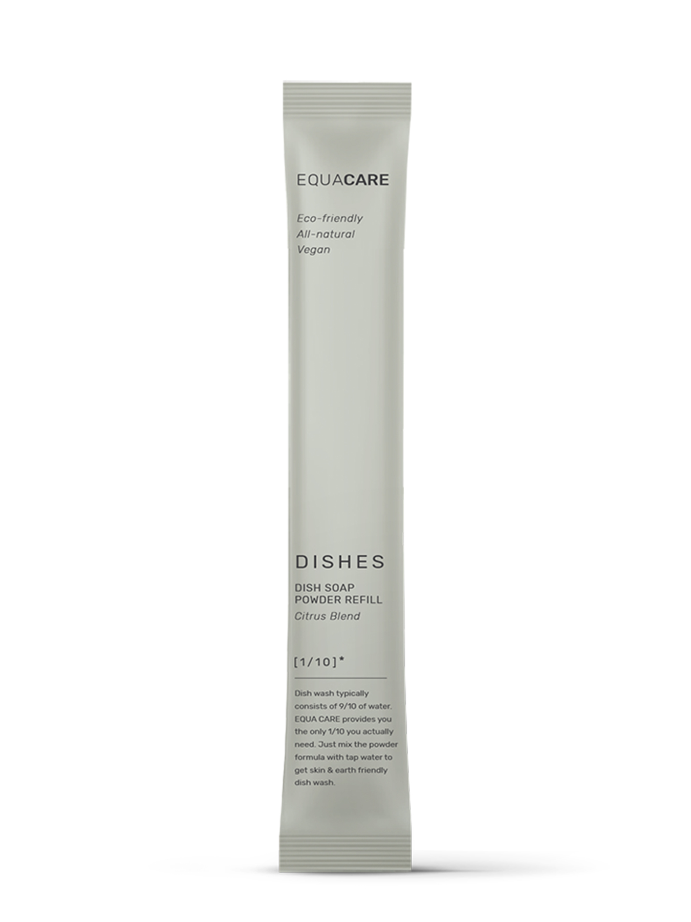 Vysoce efektivní proti špíně a zároveň 100% biodegradabilní. Jemný k vaší pokožce a netoxický v kontaktu s vaším nádobím. Balení EQUA CARE náplní je 100% biodegradabilní a vyrobené v EU.