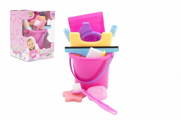 Uklízecí sada/uklízečka s doplňky plast v krabici 16x22x16cm