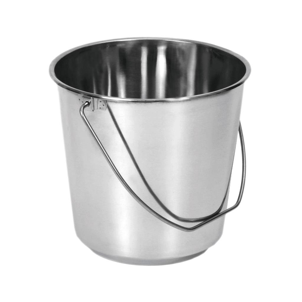 Vědro nerez. Rozměry: objem 8 litrů, průměr 25 cm, šířka s uchem 30 cm, v. 22 cm. číst celé