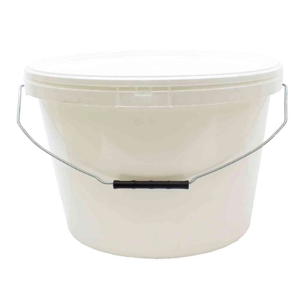 plastový bílý kbelík s víkem bez pojistky a uchem pro přenášení, objem 12 litrů, vhodné pro styk s potravinami číst celé