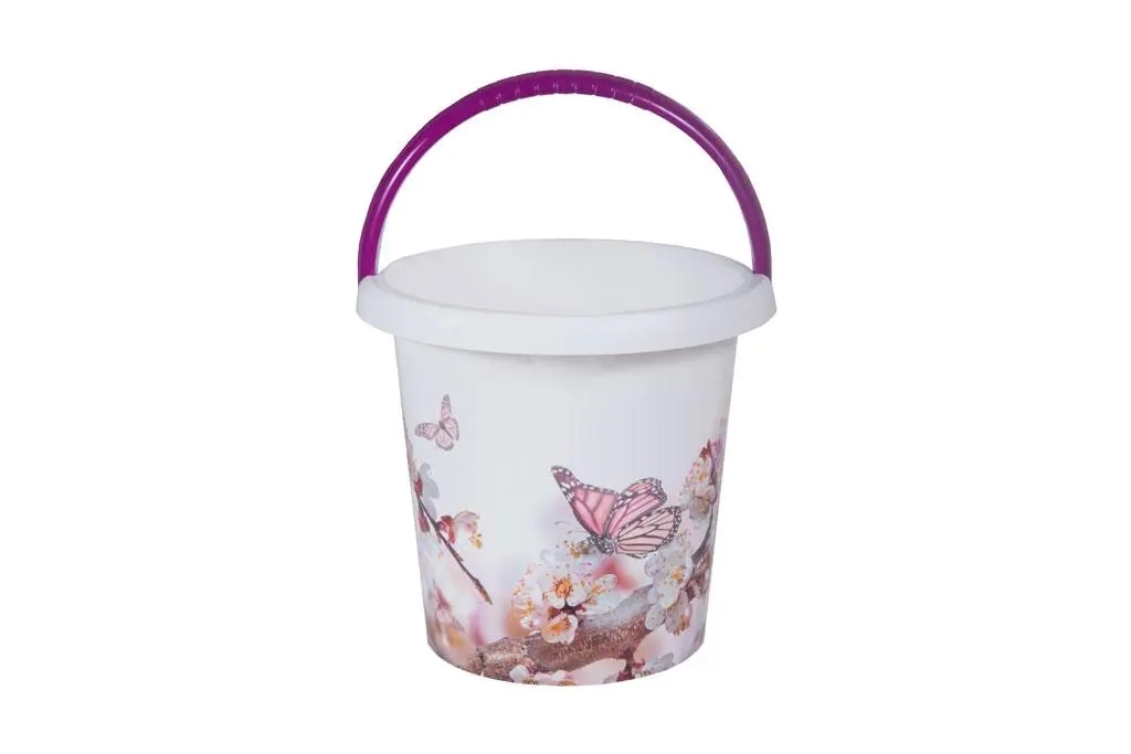 Kvalitní plastový kýbl o objemu 10 litrů s dekorem.