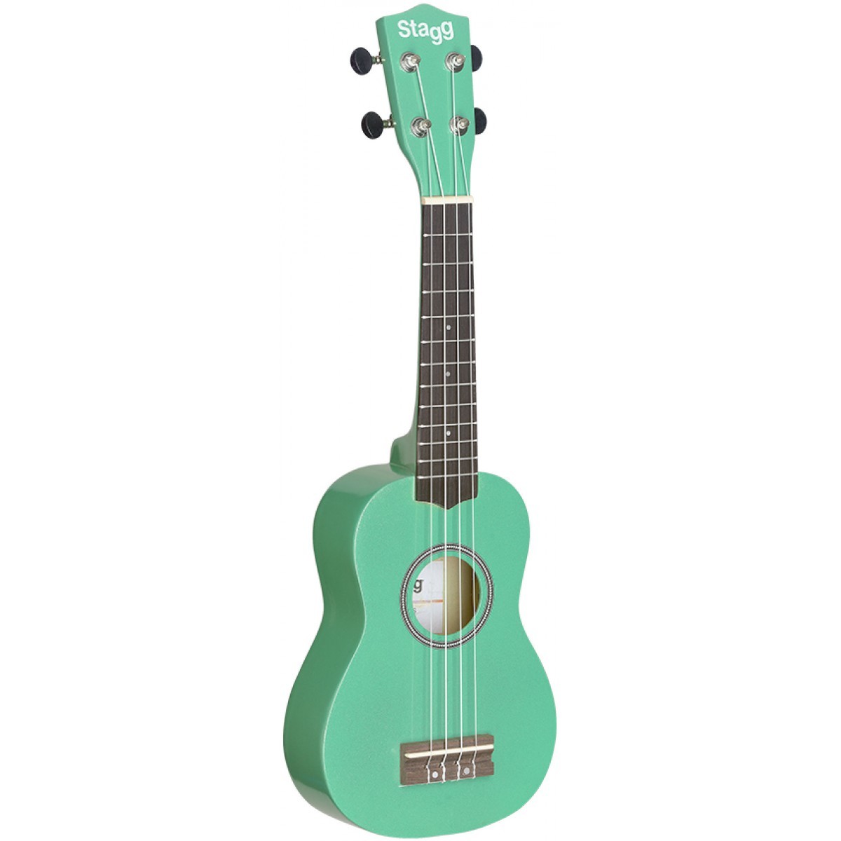 Sopránové ukulele. Vrchní deska, spodní deska a luby lípa, krk, krk a hlavice nato, hmatník a kobylka kompozitní ořech, mechanika s plastovými knoflíky. Menzura 349 mm, hmatník 177 mm, 12 pražců, krk a hlavice 300 mm, tělo 240 mm, celková délka 540 mm, ladění G-C-E-A. Barva zelená (grass). Dodáváno vč. nylonového povlaku.