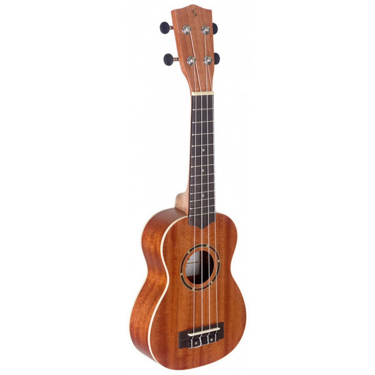 Sopránové ukulele. Vrchní deska, spodní deska a luby sapele (druh exot. dřeviny), krk mahagon, hmatník a kobylka kompozitní ořech, otevřená ladicí mechanika s černými knoflíky. Lemování těla a tečky na hmatníku bílá výložka (ABS). Menzura 349 mm, celková délka 534 mm, struny Aquila, ladění G-C-E-A. Barva přírodní. Dodáváno vč. nylonového povlaku.