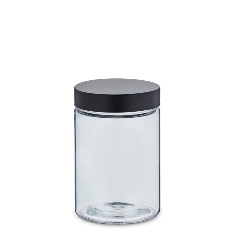 Pro větší pořádek při skladování: kulatá skleněná dóza se šroubovacím víčkem z nerezové oceli. Zásobník je vysoký 17 cm a má průměr 11 cm. Jeho objem je 1,2 l. Sklo/víko nerez matná černá, 11cm , 17cm v