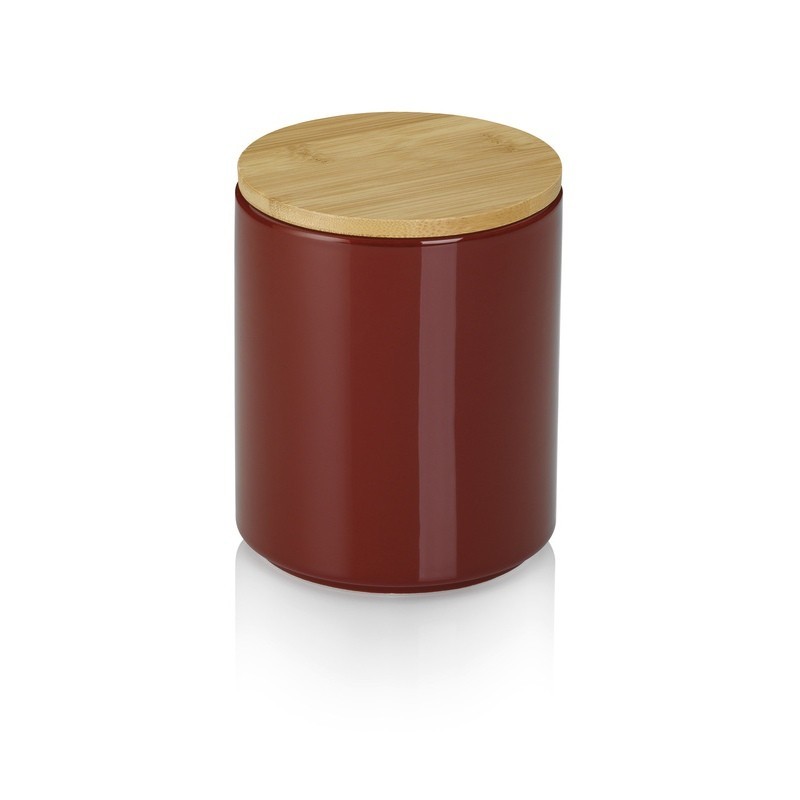 Úložné dózy Cady jsou vyrobeny z keramiky a mají krásné bambusové víko se silikonovým kroužkem. Touto variantou je červená verze o objemu 1,0 l. Plechovka je nejen slušivá pro organizační a skladovací účely. Plechovka je také zvýrazněním pro selektivní akcenty nebo jako dekorativní prvek. Výška 15 cm, 12 cm. Keramika s bambusovým víkem 15 cm v, 12 cm , 1L