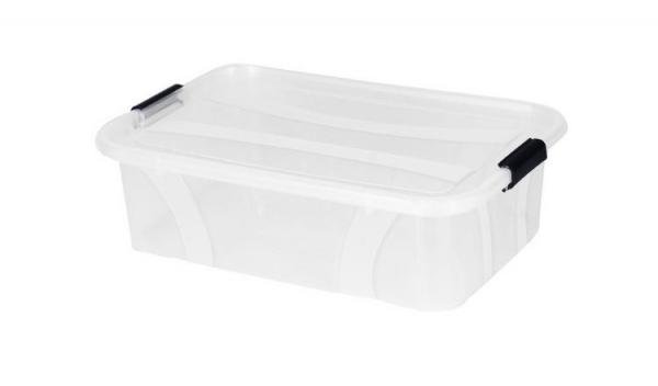 Plastový průhledný box 7l s víkem KLIK nejen na oblečení, ale i různé drobnosti. Díky průsvitnému provedení boxů budete mít dobrý přehled o obsahu a umožní vám ještě lepší orientaci v policích a skříních.Díky jednoduchému uzavírání víkem, můžete položit jednotlivé boxy na sebe, aniž by se převrátily.