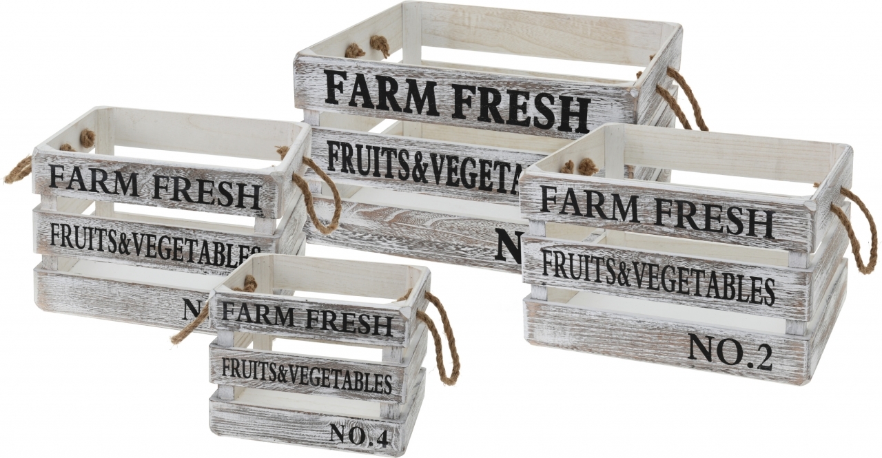 Dřevěné bedýnky FARM FRESH s/4, bílé s patinou