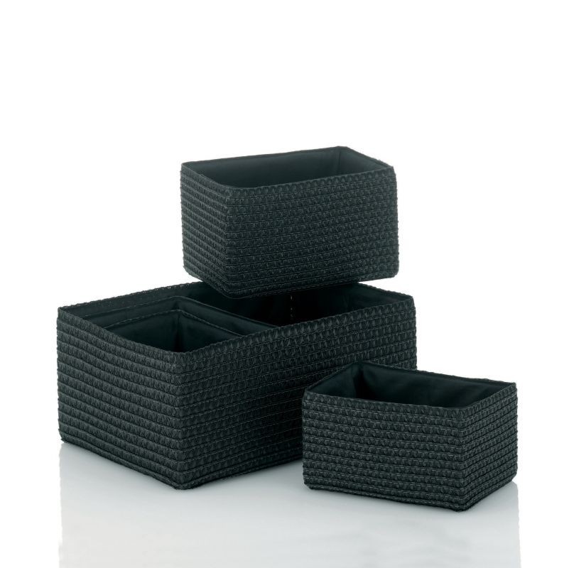 Sada obsahuje:- 2x koš 20 x 14 x 11 cm- 2x koš 22 x 16 x 14 cm- 1x koš 35 x 25 x 15 cm- materiál: PP plast- vnitřek: podšívka- barva: černá- značka: KELA