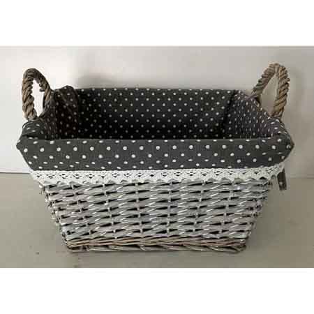 Košík, proutěná dekorace s látkou.