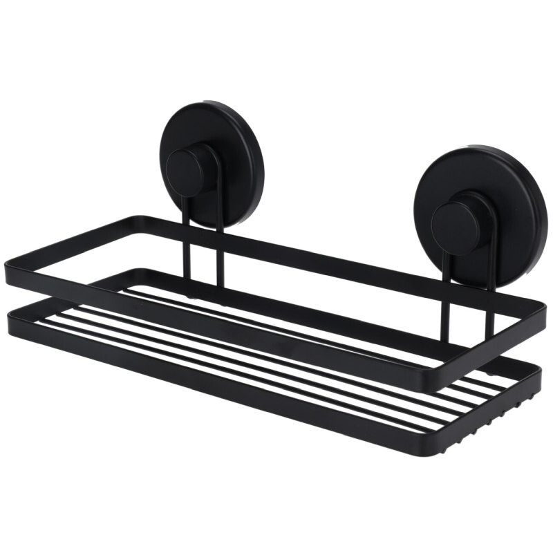 Tato černá kovová polička nabízí pevnou a stabilní konstrukci s rozměry 25 x 10 x 8,7 cm, což poskytuje dostatek prostoru na uskladnění sprchových gelů, šamponů nebo jiných drobností. Materiál kov zajišťuje dlouhou životnost a odolnost vůči vlhkému prostředí, typickému pro koupelny.