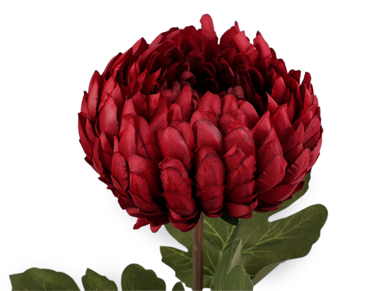 Umělá chryzantéma - 1 ks - 5 (Ø12 cm) červená tmavá zavřená