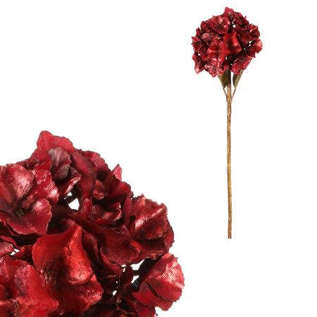 Tato umělá hortenzie v řezané podobě s pozlacenými okvětními lístečky bude skvělou volbou pro vytvoření úžasné vánoční výzdoby. Zdobí ji především velký červený květ, který je doplněn sváteční zlatou barvou. Jako umělá vám přináší trvalou krásu, která nikdy nekončí a vy ji budete moci používat i v dalších letech, a to v plné kráse.