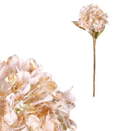 Hortenzie s pozlacením - umělý květ na stonku, barva krémová.