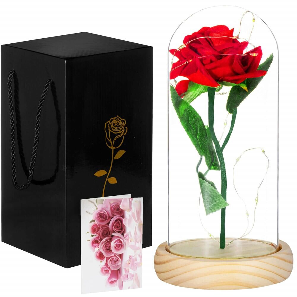 Tato elegantní květina je bezúdržbová, což znamená, že nepotřebuje žádnou péči ani zálivku, ale přesto vypadá naprosto přirozeně a živě díky velmi detailnímu zpracování a realistickému vzhledu. Růže je umístěna ve skle s ochranným krytem, který ji chrání před poškozením a špínou, čímž prodlužuje její životnost. Součástí je i jemné LED osvětlení, které jemně podtrhuje krásu květiny a může sloužit jako decentní lampička a dekorace zároveň. Díky tomu je tento produkt ideálním dárkem pro každou příležitost - ať už chcete potěšit někoho blízkého, nebo si zpříjemnit atmosféru ve svém domově či kanceláři.