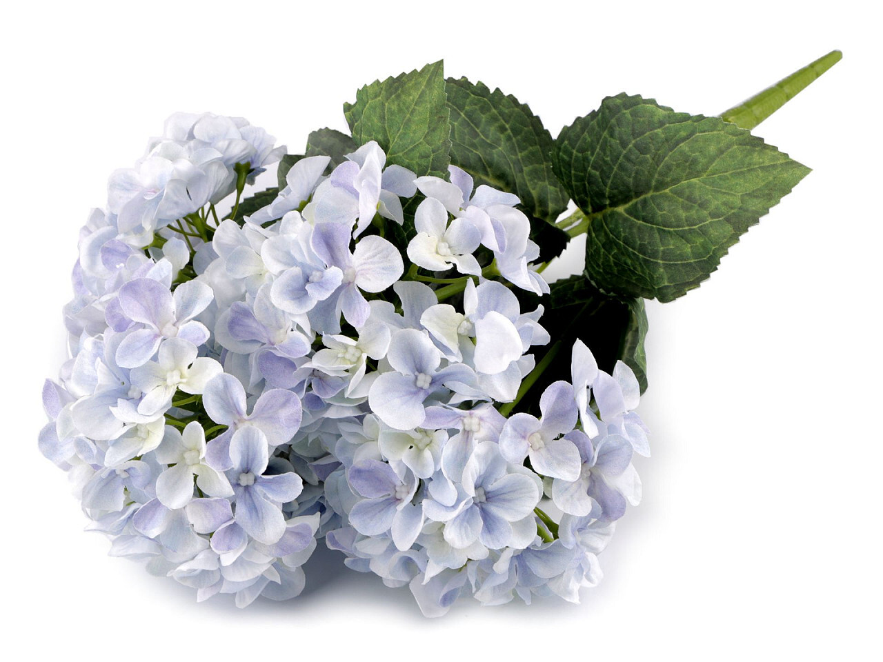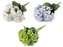Umělá kytice hortenzií vynikne ve vázách nebo zakomponovaná v květinových vazbách a aranžmá. Tvoří ji 5 stonků s bohatým květenstvím. Uvnitř každého stonku je drát. Jednotlivé květy vám mohou posloužit jako dekorace věnečků do vlasů.Průměr jednoho květenství je cca 10 cm. číst celé