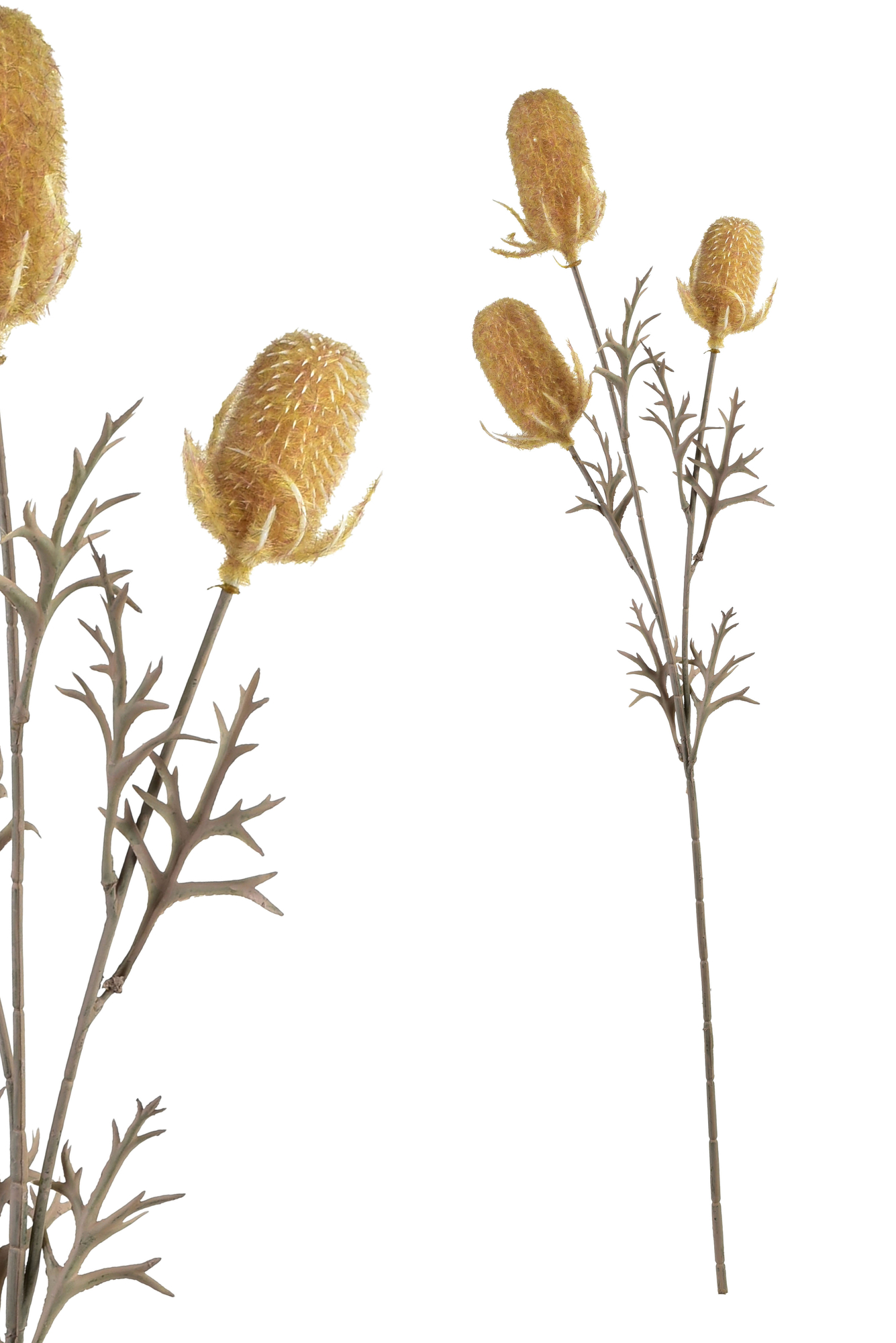 VIRIDIS Kwiat sztuczny Oset to dekoracyjna gałązka o długości 70 cm, wykonana z wysokiej jakości tworzywa sztucznego i wiernie odwzorowująca naturalną strukturę tej wyjątkowej rośliny. Składa się z trzech realistycznie uformowanych główek ostu, umieszczonych na jednej elastycznej łodydze, którą można łatwo dopasować do różnych aranżacji. Każdy z ostów charakteryzuje się szczegółowo odwzorowanymi kolcami i charakterystycznym kulistym kształtem, co nadaje kompozycji surowego, ale eleganckiego charakteru.Naturalna kolorystyka oraz matowe wykończenie sprawiają, że gałązka doskonale prezentuje się zarówno jako pojedynczy element w wazonie, jak i w zestawieniu z innymi kwiatami czy zielenią ozdobną. Oset z kolekcji VIRIDIS to trwała alternatywa dla świeżych roślin . nie wymaga pielęgnacji, nie więdnie i przez długi czas zachowuje nienaganny wygląd. Dzięki swojej uniwersalności i wyrazistej formie doskonale sprawdza się w nowoczesnych, rustykalnych i minimalistycznych wnętrzach, wnosząc do nich odrobinę dzikiej, naturalnej energii.