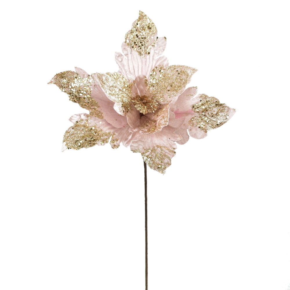 Poinsetie třpytivá - růžová je dokonalá dekorace, kterou můžete použít na váš vánoční stromeček nebo ji umístit kamkoliv v domě. Tato nádherná rostlina má dlouhý zápich, což znamená, že ji můžete snadno připevnit ke stromu či jiným povrchům. S výškou 45 cm a průměrem květu 33 cm, bude tento květ okamžitě přitahovat zraky vašich hostů.
