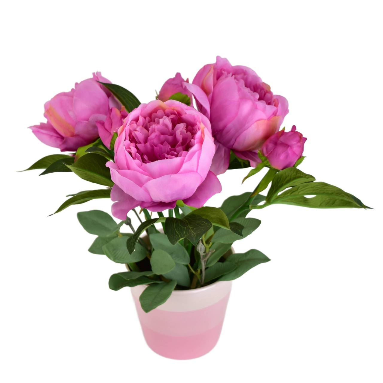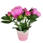 Objevte krásu a eleganci s našimi fialovými pivoňkami v praktickém a stylovém keramickém květináči. Tato ohromující kytice obsahuje 6 květů (3 nádherné květiny a 3 poupata), které jsou pevně umístěny v atraktivním růžovém květináči.