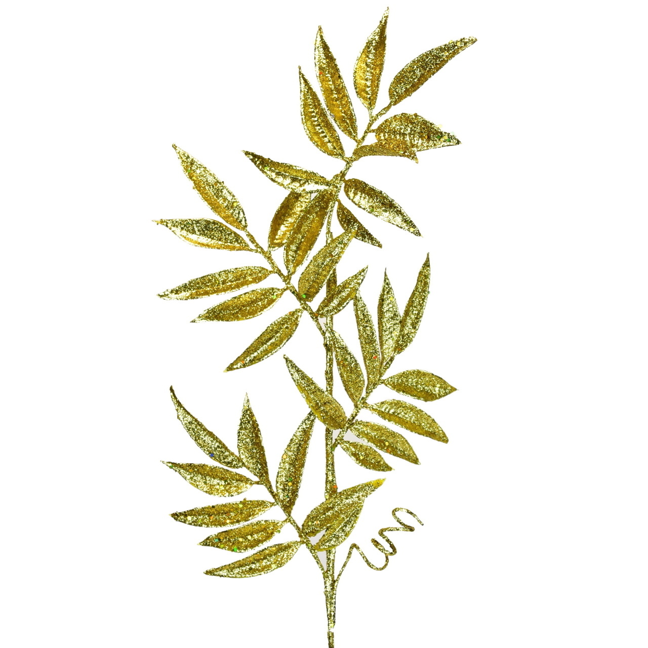 Tato dekorativní vánoční větev je jedinečná díky svým zlatým glitrovým detailům, které přidávají do vaší vánoční výzdoby nadýchanou a jiskřivou atmosféru.
