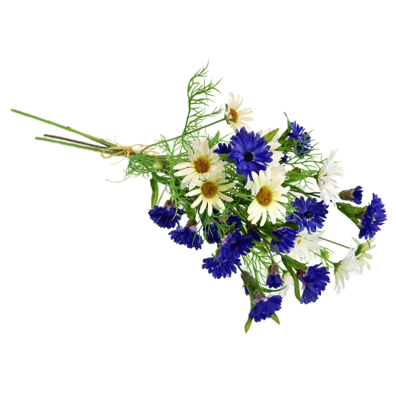 Úžasná kytice Lučního kvítí kopretiny bílé je skvělým způsobem, jak osvěžit váš domov. Tato kytice je ručně vyráběná a obsahuje 2 krásné květiny bílých kopretin a 2 nádherné květiny modrých chrp. Každá kopretina je zdobena 7 kvítky a chrpa 10 kvítky, což zajišťuje, že vypadají přirozeně a krásně. Výška kytice je 70 cm, ideální jako středový kus pro vaše bydlení.