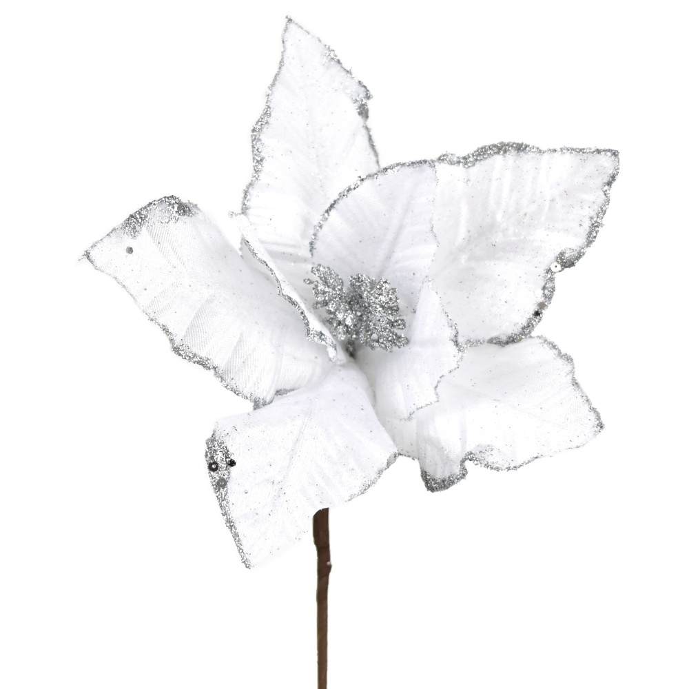 Neotřelý a výrazný dekorační doplněk pro Vánoce - umělá Poinsetie třpytivá zápich v elegantní bílé barvě se stane tou správnou volbou pro Vaší vánoční výzdobu. Využijte možnosti jednoduchého a efektního zdobení, bez nutnosti čekání na kvetoucí rostliny.