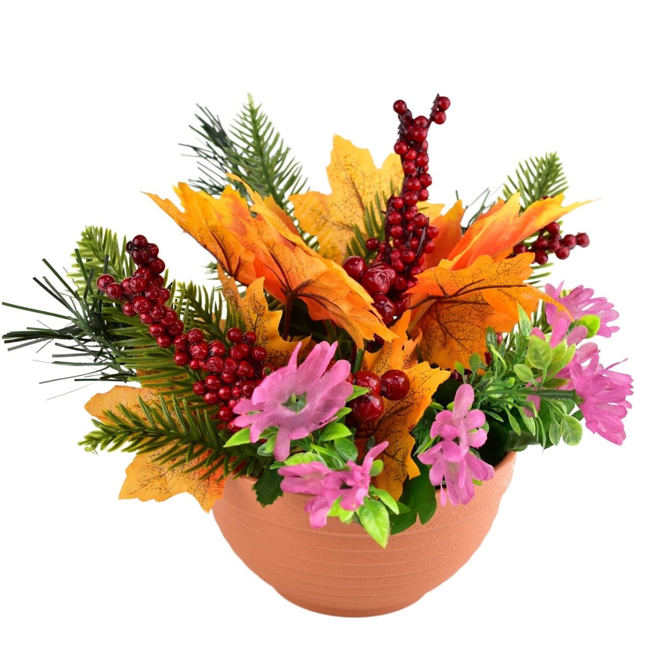 Tato miska je ideální pro smuteční dekorace nebo jako podzimní ozdoba pro váš domov. Její rozměry činí 22 cm na výšku a 25 cm na šířku, přičemž samotná miska má průměr 15 cm a výšku 7,5 cm. Celková hmotnost produktu je 800 g, což zajišťuje dostatečnou stabilitu. Zvolte naši podzimní misku a obohaťte svůj interiér o jedinečný podzimní šarm.