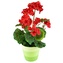 Umělá květina Muškát s červenými květy v zeleném keramickém květináči je skvělým doplňkem pro vaše interiéry. Tento stylový výrobek se skládá ze 7 květů muškátu v intenzivní červené barvě, které dodají Vašemu domovu eleganci a šarm.