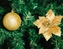Poinsetie květ zápich textilní třpytivá zlatá Ø22 cm, 6 ks