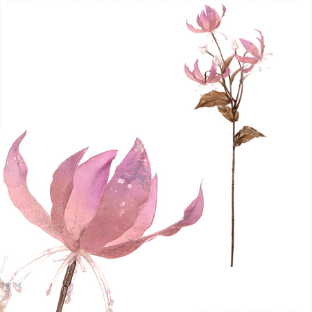 Umělá gloriosa s růžově zbarvenými květy, zlatými lístky a jemnými třpytkami přidá do vánoční výzdoby nádech luxusu a elegance. Tento květ na stonku je ideální pro vytvoření působivého svátečního aranžmá, které rozzáří váš interiér.