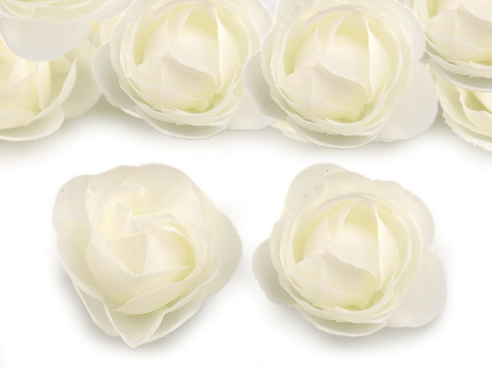 Textilní květ růže Ø3,5 cm - 20 ks - 2 krémová nejsvět.