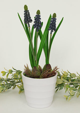 Modřenec v bílém plastovém obalu. Květina umělá.