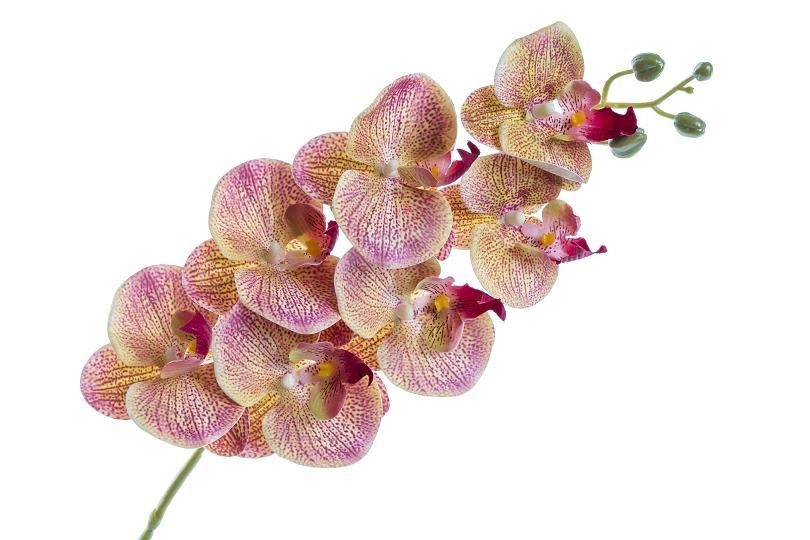 Umělá květina - orchidej. Orchidej má jeden výhony.