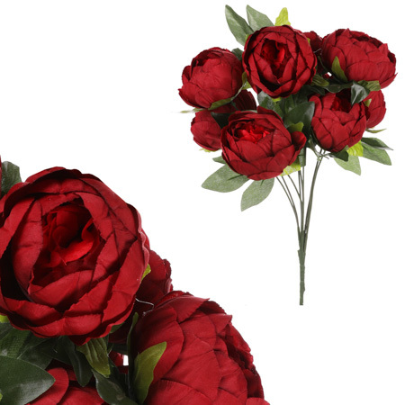 Pivoňky v pugetu, 9 hlav, barva bordó.