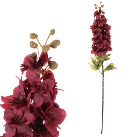 Využijte výhod, které nabízí umělá květina v podobě ostrožky s bordó barvou květů. Bez nutnosti péče a údržby získáte trvalou a nikdy nekončící květinovou dekoraci, kterou můžete používat tak dlouho, jak jen budete chtít. Ostrožka je nádherná květina, která je známá pro svůj elegantní a vznešený vzhled. Tato květina patří do čeledi hvězdnicovitých a je považována za trvalku. Ostrožky mají většinou stonky porostlé listy, které mohou být chlupaté a mají hluboké zelené odstíny. Květy jsou velké a mají charakteristický tvar hlavice, která se skládá z mnoha malých kvítků uspořádaných do kruhu.