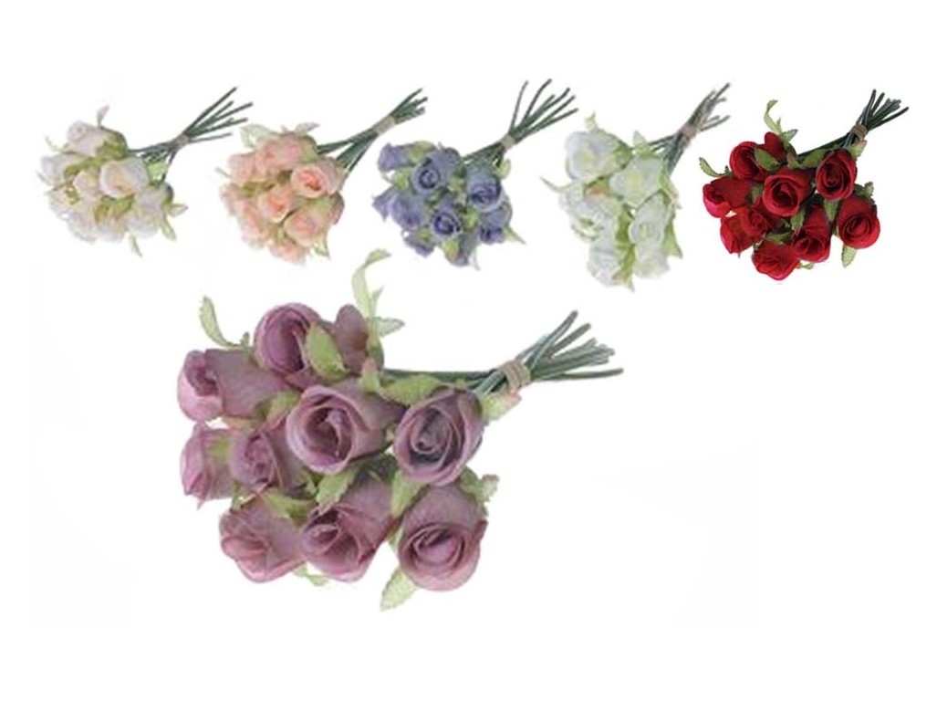 Umělé květiny, plast 270mm růže svazek 9ks, mix barev