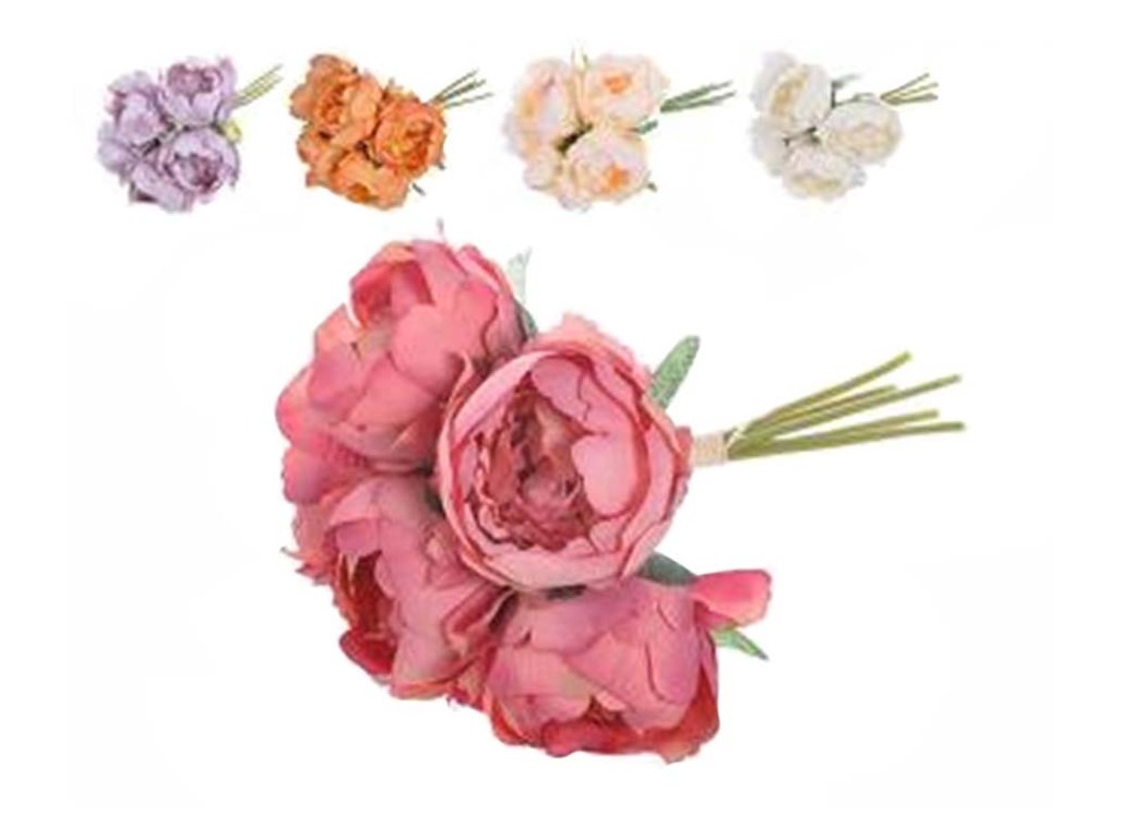Umělé květiny, plast 250mm pivoňka svazek 5 ks, mix barev