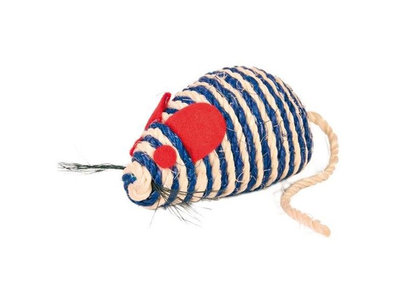 Sisalová myška naplněná kuličkami. Myš při hře chrastí a zabaví tak vaši kočku na dlouhou dobu. Tato hračka napomáhá péči o kočičí drápky. Velikost je 10 cm.
