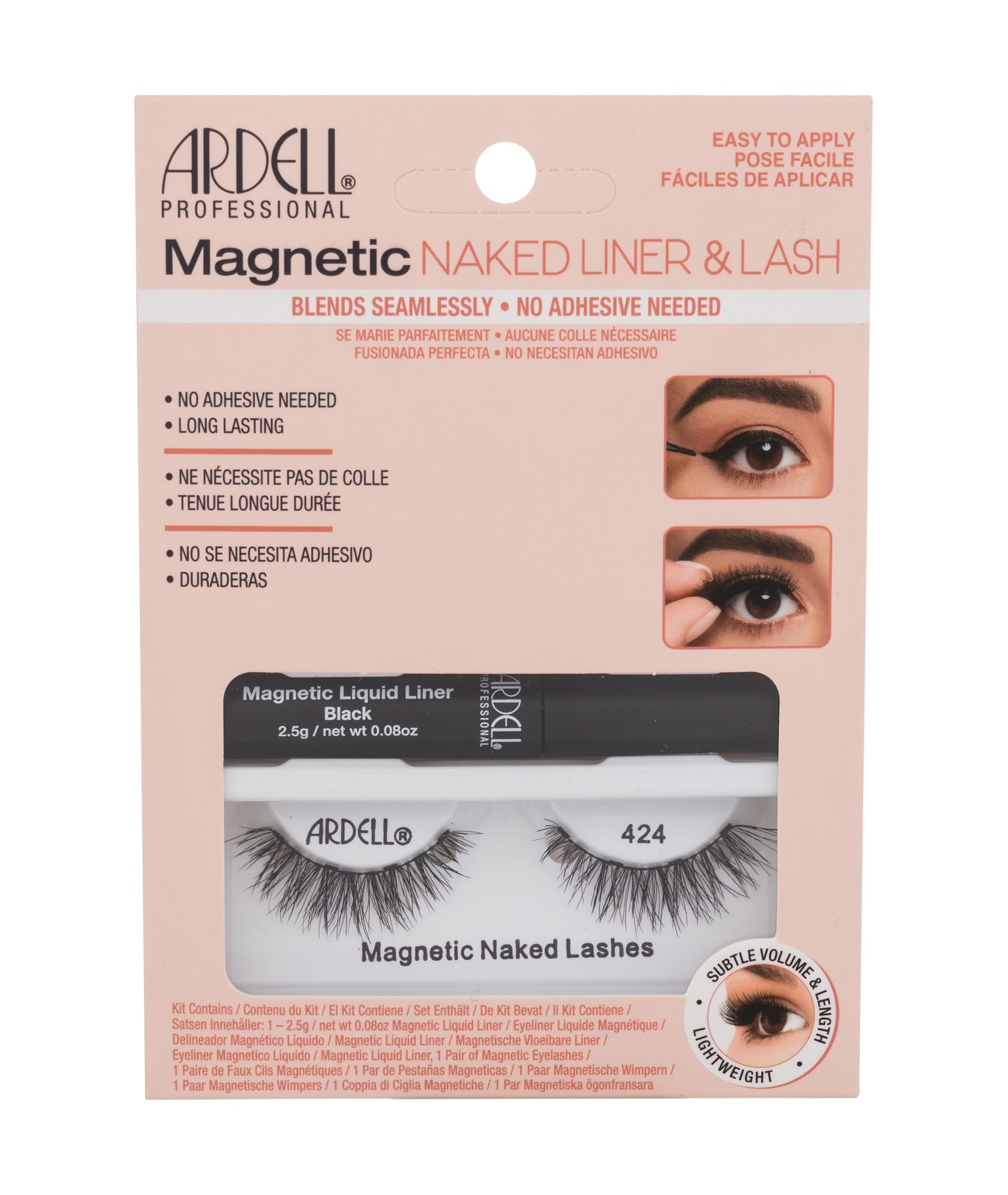 Umělé řasy s magnetickou technologií Ardell Magnetic Naked Lashes 424 zajistí silné bezpečné držení řas. Jelikož k použití není zapotřebí lepidlo, které zkracuje životnost umělých řas, vydrží řasy mnohem déle než lepící umělé řasy. Dobře se tvarují a vypadají přirozeně. S magnetickými umělými řasami Magnetic budete nepřehlédnutelná.