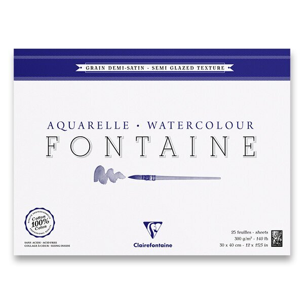 Akvarelový blok Clairefontaine Fontaine Semi Glazed 30 x 40 cm, 25 listů, 300 g