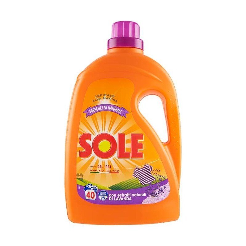 Sole univerzální prací gel s velice delikátní vůní přírodní levandule je tradičním zástupcem italských pracích gelů. Tato vůně je v Itálii velice oblíbená. Vůně na prádle vydrží opravdu dlouhou dobu. Prací gel Sole je účinný proti skvrnám již při nízkých teplotách a to díky obsaženým enzymům. Praní s tímto pracím přípravkem z Itálie je opravdu hračka, jelikož je vhodný jak na bílé, tak na barevné prádlo.