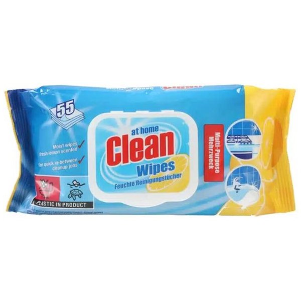 At Home Clean univerzální čisticí ubrousky na kuchyně i koupelny - 55ksuniverzální čistící ubrousky, které se hodí v každé domácnosti. Ideální pro rychlý a pohodlný úklid kuchyňských povrchů, jídelního stolu nebo dlaších omyvatelných povrchů. Skvělé jsou také do koupelen na umyvadla, skříňky nebo toalety. Ubrousky jsou vhlčené a dobře absorbují nečistoty. Po otření již není nutné povrch znovu omývat.