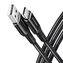 Odolný datový a napájecí kabel s prodlouženou životností je opatřen kovovými koncovkami, konektory s poniklovaným povrchem a pozlacenými kontakty. Vodiče kabelu jsou vyrobené z pocínované bezkyslíkaté mědi. Kvalitní izolace kabelu, vyrobená z flexibilního TPE, zaručuje maximální odolnost, ale zachovává i dostatečnou ohebnost. Konečnou pevnost kabelu dodává nylonový oplet. Bonusem je praktická páska pro snadné sbalení kabelu.Napájecí vodiče 22AWG (nižší číslo = větší průřez a nižší odpor vodiče) garantují rychlé nabíjení telefonů a dalších mobilních zařízení. Datové vodiče 30AWG spolu s kvalitním stíněním, zajišťují spolehlivý přenos dat. Dvojité stínění chrání přenášené signály před nepříznivým rušením.Nylonový oplet v kombinaci s kabelovou průchodkou podstatně zmírňují nebezpečný ohyb kabelu. Životnost kabelu je tak prodloužena na více jak 8000 standardních ohybů. Mechanickou odolnost kabelu zvyšují také hliníkové kryty koncovek.
